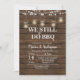 Cartão de convite de aniversário com luzes de corda, cartão de convite rústico com fundo rústico e de madeira.