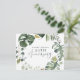 Convite de aniversário de 50 anos com folhagem botânica em aquarela. Belas aquarelas florais impressas à mão e texto em letra cursiva moderna. Parte de uma coleção de festa.