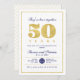 Este convite de aniversário de casamento de 50 anos moderno apresenta uma tipografia simples, porém elegante, em dourado e azul-marinho. Você pode alterar a cor do fundo.