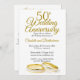 Belo convite de aniversário de casamento de 50 anos. Convide seus convidados para a celebração do seu casamento de ouro com estilo. Este convite de aniversário minimalista contém um design simples de aliança de casamento. Personalize totalmente o texto para combinar com o seu próprio evento.