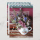 A frente deste convite personalizado moderno é nossa fotografia original de belas flores em uma chaleira de chá antiga. O número de anos é mostrado em branco. O verso é a mesma foto, com texto de convite roxo. Um belo convite para uma festa de aniversário de casamento de 75 anos. Fotografia original de Marcia Socolik. Todos os Direitos Reservados © 2015 Alan & Marcia Socolik.