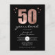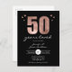 Convites de aniversário de casamento de 50 anos elegantes rosa falso brilho e folha 50 anos amados. O texto também pode ser ajustado, bem como as cores da fonte e a cor do fundo. Convites de aniversário de 50 anos para adultos.