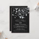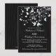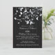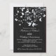 Convite de aniversário de casamento de pássaros de amor elegante e moderno apresenta um casal de pássaros de amor com um galho de árvore adornado com borboletas e corações sobre um fundo riscado preto clássico e popular. Belo para uma celebração de aniversário de casamento de 25, 30, 40, 45, 50 ou 60 anos. Disponível em nossa loja em uma grande variedade de opções de cores modernas e elegantes