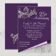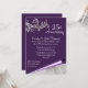 Elegante convite de festa de aniversário de casamento de vigésimo quinto aniversário feito em tom de roxo e prata, com floreios barrocos encantadores e gráficos de borda enrolada, na parte inferior. O texto em branco está pronto para ser personalizado para as necessidades do seu evento. Um convite encantador que você terá orgulho de enviar.
