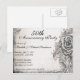 Convite de Aniversário de Casamento Elegante Vintage Rose em um cartão postal. Um design elegante com uma rosa vintage em um fundo de papel pergaminho desbotado e desgastado, feito para parecer com o estilo vitoriano antigo. ****Todo o texto é personalizável e tem uma bela fonte de caligrafia e fonte serifada. ((Mostrado aqui é um convite de aniversário de casamento de 50 anos)