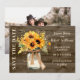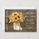 Anuncie seu casamento em estilo country-chic com este cartão de convite de casamento com girassóis rústicos. Com um buquê de girassóis pintados à mão em um jarro de pedra, contra um fundo de madeira de celeiro, este design é perfeito para casamentos de outono, fazenda ou ao ar livre. Personalize com seus nomes, data do casamento e uma foto favorita no verso para uma primeira impressão encantadora.