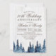 Convite de Aniversário de Casamento em Madeira Rústica com Árvores de Abeto e Pinheiro em Aquarela