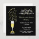 Elegante convite de festas de aniversário de casamento, feito em preto e ouro. Gráficos de um copo festivo de champanhe decorado com arco de tom de ouro, no caule, e faíscas que saem do topo, ficam no lado esquerdo do convite. Um fundo preto sólido, com texto branco e dourado, é totalmente personalizável para atender às necessidades do seu partido. Excelente para festa de aniversário também.