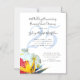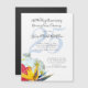 Convite magnético moderno e elegante para uma cerimônia de renovação de votos com tema tropical. Os convites planos vêm em três tamanhos e são decorados com flores de plumeria, hibisco e ave-do-paraíso. Um grande número (para anos de casados) pode ser adicionado em azul claro ao fundo, ou excluir o número de exemplo.