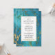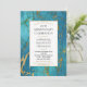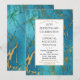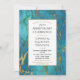 Um convite de aniversário de casamento elegante com rico mármore azul esverdeado entrelaçado com dourado e uma moldura dourada.