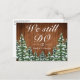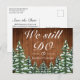 Convite de aniversário de casamento "Nós Ainda Fazemos" cartão postal. Madeira marrom rústica, fundo nevado e floresta nevada. Estilo country vintage aconchegante. Mais itens estão disponíveis neste estilo em nossa loja. Você pode editar o design ainda mais, alterar cores, fontes e adicionar texto extra clicando no link "personalizar ainda mais".