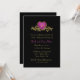 Convite de festa de aniversário de casamento de cinquenta anos moderno e elegante feito em preto. Gráficos de um coração rosa emoldurado em dourado metálico, no topo do convite, tem um número gráfico 50 em tom dourado dentro e floreios dourados em ambos os lados. Personalize todo o texto para o seu próximo evento de aniversário.