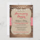 Altere o texto para se adequar à sua festa de aniversário. Este convite de xadrez vermelho e madeira rústica é a combinação perfeita para um visual elegante romântico. Impressão na parte de trás incluída