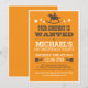 Está organizando uma festa de aniversário de caubói do oeste para o seu garotinho? Aqui está um convite perfeito para combinar com o tema. Caubói clássico montando um cavalo com a estrela do norte ao seu redor. Design de cartaz de procurado vintage e rústico. Personalize a palavra e a fonte para qualquer ocasião com tema de caubói, como chá de noiva, chá de bebê e mais.