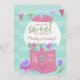 Prazer em comemorar com doces, bolachas e cupcakes para a festa de aniversário do seu filho. As cores suaves são perfeitas para qualquer idade com um dente doce. A parte de trás continua a design de cor com listras.