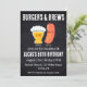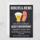 Celebre seu dia especial com um churrasco de quintal e muitas torcidas! Este convite de tema rústico apresenta um hambúrguer delicioso e uma cerveja fria, perfeita para uma festa de aniversário adulta. O design inclui as palavras-chave "animações", "cervejas" e "quintal" para ajudá-lo a encontrar o convite perfeito para a sua celebração.