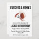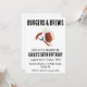 Celebre seu dia especial com um churrasco de quintal e muitas torcidas! Este convite de tema rústico apresenta um hambúrguer delicioso e uma cerveja fria, perfeita para uma festa de aniversário adulta. O design inclui as palavras-chave "animações", "cervejas" e "quintal" para ajudá-lo a encontrar o convite perfeito para a sua celebração.