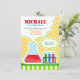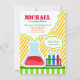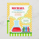 Celebre sua pequena festa de aniversário gênica com uma Festa de aniversário de ciência. Este Convite de festas Mad Scientist apresenta um frasco químico laboratorial sobre um padrão de listras amarelas. Arrumem sua pequena festa de aniversário de einstein com nosso convite de festas de ciência louca. Este cientista convida a design também é perfeito para receber seu gênio bebê com uma festa de chá de fraldas cientista louco.