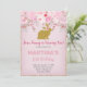 Convite de aniversário de coelhinha rosa e dourada