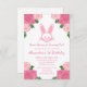 Convite de aniversário de coelhinho florido rosa