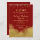Um convite de aniversário de casamento elegante vermelho e dourado com poeira de confete dourado no topo e brilho dourado glamoroso na parte inferior.