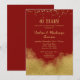 Um convite de aniversário de casamento elegante vermelho e dourado com poeira de confetes dourados no topo e brilho dourado no fundo.