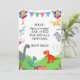 Faça o aniversário do seu filho rugir com este convite divertido e colorido com tema de dinossauros! Com dinossauros de desenho animado fofos, balões, faixas de festa, confetes e caixas de presentes, este design divertido é perfeito para crianças que amam dinossauros. As cores vibrantes e elementos alegres criam uma atmosfera de festa emocionante, ideal para aniversários de meninos, celebrações de crianças pequenas ou festas com tema de dinossauros. Personalize facilmente com os detalhes da sua festa para uma celebração memorável.