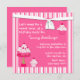 O convite de aniversário de uma menina doce é feito com um fundo listrado rosa e branco, e uma área de texto rosa em camadas, sobre o fundo. Gráficos de uma fita branca, no topo, e cupcakes bonito caprichosos decoram o convite. O texto de diversão branca é totalmente personalizável para as necessidades do seu partido. Excelente convite para a festa de aniversário de qualquer menina.