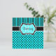 Este convite de festa de aniversário de 16 anos Sweet 16 com bolinhas e listras azul aqua e preto também pode ser personalizado para uma Quinceanera, Bat Mitzvah, chá de noiva, festa de noivado e muitos outros eventos especiais. O texto e a escolha do papel são personalizáveis. Se houver algum item correspondente que você gostaria neste design, como RSVP's, cartões de agradecimento, cartões de "salve a data", etc., por favor envie um e-mail para niteowlstudio@gmail.com com sua solicitação.