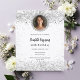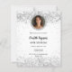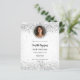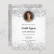 Um convite para uma elegante festa de aniversário 21 (ou qualquer idade). Um fundo branco chic na frente. Decorado com falso confete prateado. Personalize e adicione o seu dentro de fotografia ao quadro de diamante falso, nome e detalhes da festa. O nome é escrito com um script de estilo manuscrito. Fundo: falso prateado olhando fundo com brilhos. 1 folha = 1 convite impresso de borda a borda.