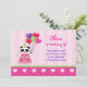 convite de aniversário bonito e divertido. Perfeito para celebrar uma festa em torno do Dia de os namorados. Possui um urso panda vestindo um chapéu de festa e segurando balões com forma de coração. design cor-de-rosa, vermelha, verde e roxa. Adicione seu próprio texto e você está definido. Os detalhes do evento estão no verso.