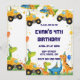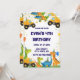 Convite de Aniversário de Dinossauro de Construção Caminhão de Carga Escavadeira Convite de Festa