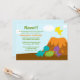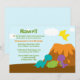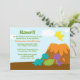 O convite para a festa de aniversário deste rapaz tem um design de dinossauro bonito e colorido. Há um vulcão na parte inferior direita com três dinossauros em frente, com um amarelo voando. Você pode personalizar facilmente as informações de sua parte à esquerda. Gráficos pelo Stockberry Studio em Mygrafico com