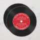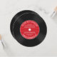 Convite de aniversário de disco de vinil vintage com um padrão de faixa estelar vermelha retrô em um convite de aniversário circular fofo cortado. Perfeito para aniversário de qualquer idade adulta, festa de 30 anos, festa de 40 anos, festa de 50 anos, festa de 60 anos.
