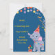 Celebre o dia especial do seu filho com este adorável cartão de convite de aniversário de elefante! Com um adorável elefante bebê usando um chapéu de festa, balões coloridos e decorações festivas, este design cria uma atmosfera de festa divertida e alegre.