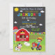 Convite de fazenda de aniversário para o aniversário do Barnyard, convidem a festa do Red Barn para o convite do Cowboy para o convite de aniversário do Western. Convide seus amigos para a festa ao ar livre com este convite para o tema animais de festa brilhantes e coloridos! Este convite para o país Vermelho, Verde e Amarelo inclui o rapaz andando a cavalo, o celeiro vermelho e alguns animais de exploração: vaca, ovelha, pato, cavalo, porco e galinha. Simplesmente edite este menu de personalização fácil de usar modelo para torná-lo especial.