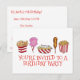 Perfeito para uma festa de aniversário com tema de carnaval ou circo, este design apresenta uma fileira de alimentos clássicos, incluindo batatas fritas, algodão doce, nachos, cachorro-quente empanado e pipoca. Basta personalizar com as informações do seu evento.