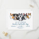 Rabos abanando para nossos amigos de quatro patas. Celebre o seu pequeno completando um ano com este convite de aniversário temático inspirado em cachorros. Estes adoráveis filhotes; um Bernês, corgi, bulldog francês, husky e shetland saindo para uma aventura, são uma ótima escolha para qualquer amante ou dono de cães. É um convite perfeito para seus amigos e familiares em qualquer ocasião. Trate-se com estilo de filhote, adicione este design à sua coleção.