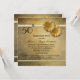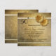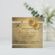 Um convite de aniversário elegante em estilo vintage com margaridas douradas em um fundo de aniagem.