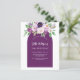 Um fundo violeta, lavanda, colorido d'água e uma armação de arco. Decorado com flores violetas e púrpuras de cor aquosa e verde. Personalize e adicione seu nome e detalhes da festa. 1 folha = 1 convite impresso de borda a borda.