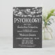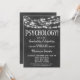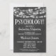 Um convite divertido de aniversário de formatura em Psicologia com quadro negro preto e branco com luzes brilhantes no topo.