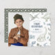 Um convite de aniversário moderno com um tema de dinossauro. Esta design apresenta um conjunto de dinossauros desenhados à mão num estilo de esboço. Os dinossauros incluem um t-rex, estegossauro, triceratops, pterodátilo e muito mais! Há palmeiras e folhas de samambaia entre os dinossauros. O esquema de cores é uma combinação de tons verdes e azuis. No lado esquerdo, há sua foto personalizada. Cartões invertem para um padrão de rastros de dinossauros contra um fundo verde. Sinta-se à vontade para me contactar se quiser este design num esquema de cores diferente! Como parte da seleção do orçamento do Zazzle, esta folha não vem em tamanhos padrão de cartão. Para colocar este design em uma placa padrão, você pode encontrá-lo na coleção ou usar o Zazzle Make Machine para transferi-lo para o seu produto preferido. Visualize a coleção vinculada nesta página para itens correspondentes ou visite nossa loja para mais convites de festas de aniversários!