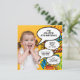 Personalize com o nome e a foto da menina ou do menino aniversariante e todos os detalhes da festa. Um convite de aniversário inspirado em histórias em quadrinhos retrô divertido e legal para qualquer idade que dá um soco, zap, pow em qualquer celebração de aniversário de super-herói. Criado por Thisisnotme©
