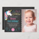 Jogue uma festa de aniversário mágica de um unicórnio temático com estes convites de unicórnio caprichoso. A FOTO DA AMOSTRA NÃO ESTÁ INCLUÍDA. SUBSTITUA POR SUA PRÓPRIA FOTO ANTES DE ENCOMENDAR.