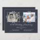 Um convite com duas fotos, em azul escuro com molduras decorativas azul claro, apresentando imagens do casal de aniversariantes então e agora. (<a href="https://www.freepik.com/free-vector/ornamental-frames-in-vintage-style_1344745.htm">Criado por Freepik</a>). <br/><br/>O cartão é fácil de personalizar com sua redação, fonte, cor da fonte, opções de forma de papel e escolha de seis tipos de papel.<br/><br/>Não é exatamente o que você está procurando? Todos os nossos produtos podem ser personalizados para atender às suas necessidades sem custo adicional.<br/><br/>Basta entrar em contato conosco em heartfelthelper@gmail.com.<br/><br/>Produtos coordenados disponíveis: Basta perguntar!