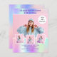 Tornar seu dia especial inesquecível com nossos Sonhos Holográficos de Aniversário em verde-rosa e roxo, especialmente para uma fabulosa celebração de adolescente! Quer seja seu aniversário de 18 anos ou qualquer marco, esses convites certamente vão impressionar e animar. Crie sua própria colagem de fotos exclusiva. Use quatro, quatro das suas fotos favoritas. Personalize e adicione um nome e detalhes da parte. 1 folha = 1 convite impresso de borda a borda.
