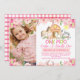 Meninas Pink Barnyard Convite para o aniversário Foto Jardim de Casca Doce ou animais de fazenda Termo de convite para o aniversário floral de uma menininha. Este convite é uma maneira segura de definir a cena para a festa de aniversário rosa de barnyard da sua menina. Este design apresenta alguns arranjos florais cor-de-rosa-arrojados e alguns animais de fazendas de aquarelas doces.