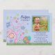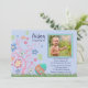Um convite para fotos, sazonal, adorável, perfeito para um aniversário que coincide com a temporada de Feriado de Páscoa. Uma árvore florescente, borboletas e um ovo decorativo embelezam a foto enquadrada do seu pequeno.
