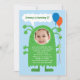 convite de festas de aniversário divertido e bonito com um tema de monstro. Excelente de um garoto enérgico que ama monstros engraçados e outras criaturas inofensivas. Possui um monstro grande, peludo e verde segurando balões com um sinal do tipo quadrinhos para anunciar o título do evento. Torne-o mais bonito quando você adiciona uma foto do rosto do seu filho no círculo que cobrir o rosto do monstro. Um personagem adorável para dar um humor aventureiro para a sua festa. Este convite pode ser usado por volta do Halloween ou durante todo o ano. Adicione seu próprio texto.