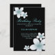 Este Convite de Aniversário personalizável do Elegante apresenta flores azuis num fundo preto. Personalize-o adicionando seus detalhes na fonte de sua escolha!